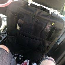 It is headache for me with the 2 kids always sitting at the back seats kicking the legs to spend the boring time, snacks and toys are everywhere. The car organizer is really helpful. It's made of water resistant machine washable material, multi pockets are easy to organize different things nicely. Now my car is clean and tidy, big relief. Thank you.