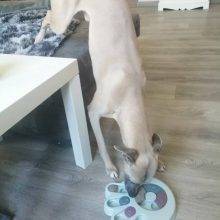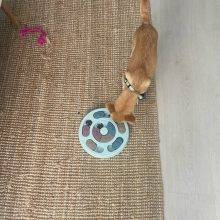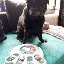 So my dog is a confirmed genius- just kidding but she solved this in less than a minute. I thought about getting a more complex puzzle but thought I’d try this one out first in case she wasn’t a genius. The only negative aspect of the product is that if your dog chews up toys she will probably chew up the puzzle pieces. So this is a puzzle I’d recommend using if you are home with your pet. I’ll look for another one to use when I am gone to keep her busy mind occupied.
