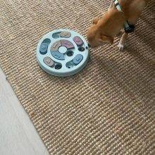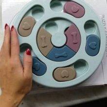 My two hounds get bored, and when they get bored they get destructive, so I've been looking for engaging games. I liked that this has "levels." I tried the middle level first. Treats were gone in 10 seconds. I took it away and made it as hard as I could. Put it down and treats were gone in 20 seconds. Then they tried to eat the little plastic bones (okay, so maybe they're not geniuses.) The issue seems to be that this is lightweight and the little bones just sit on top - they don't snap in or attach. So if you have an enthusiastic dog (or two) then it gets flipped over and the game is done. Consider personality.