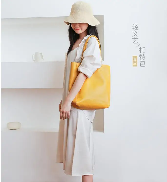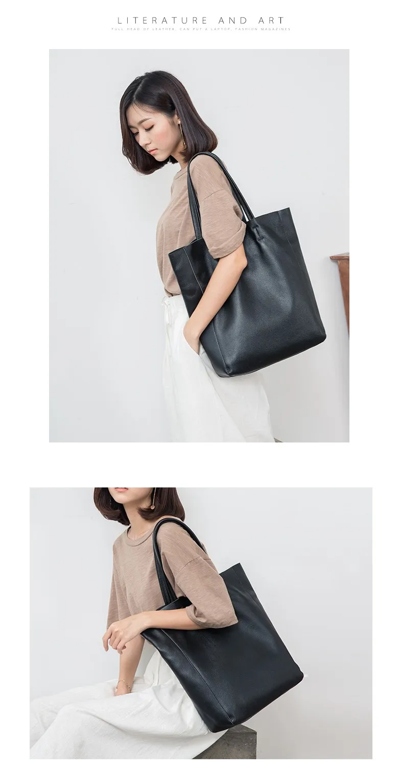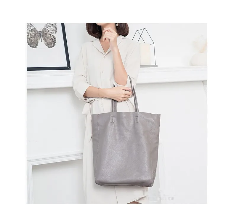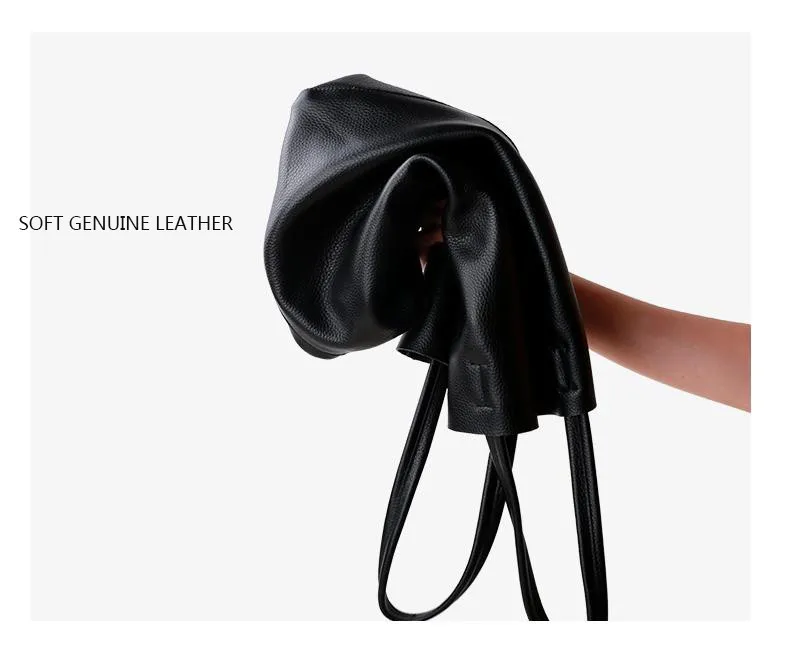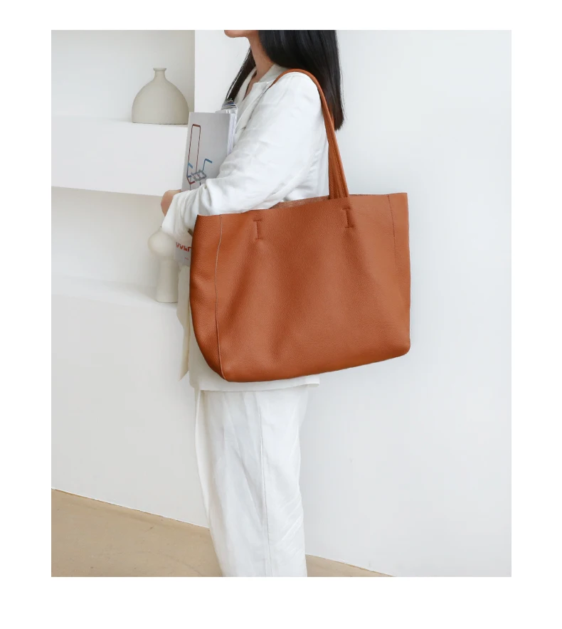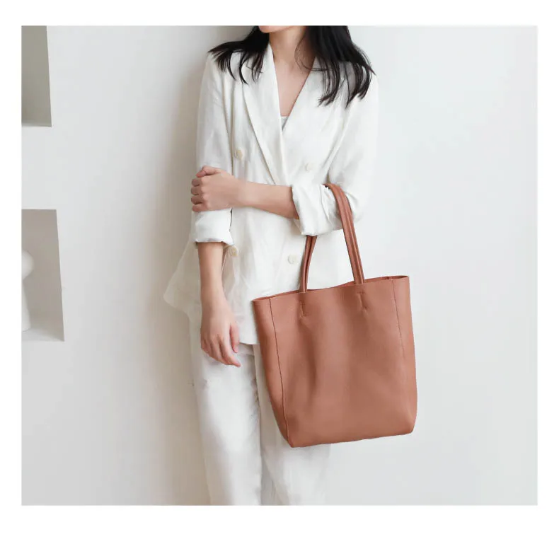 Simple Casual Leather Women Shoulder Bag Luxury Brand Designer Genuine Leather Lady Handbags Commuter Bag Large Female Totes Bag