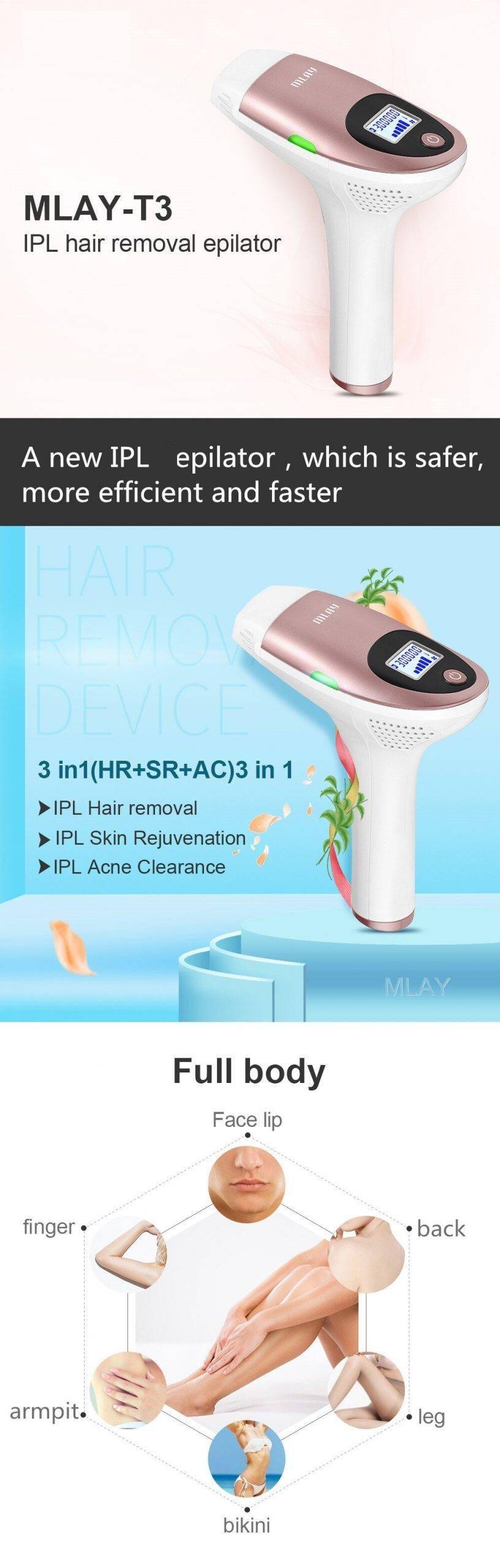 MLAY-T3 INTENSE PULSED LIGHT LASER HAIR REMOVAL EPILATOR for MEN & WOMEN for U$152-U$199