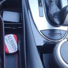 I love this gap filler, a nice addition to my car. Great fit. Not too big, not too small, and matches my leather seats. you can fit a can of soda, water bottle, cellphone, and miscellaneous items. Great quality product